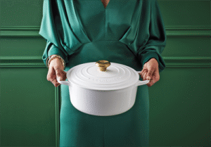 Le Creuset, het iconische Franse merk van kookgerei – bekend van zijn elegante en oerstevige gietijzeren braadpannen in vrolijke tinten,