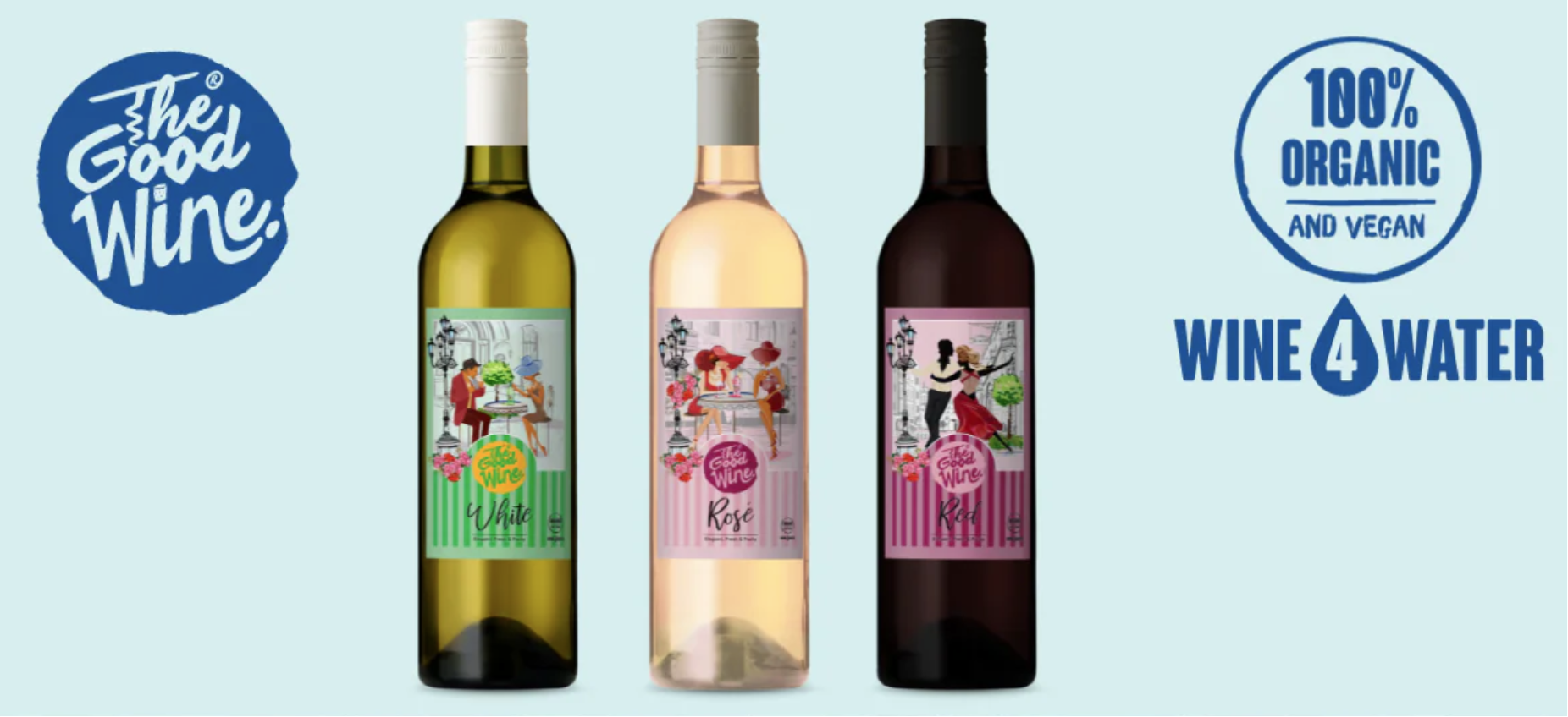 The Good Wine is een Nederlands wijnlabel dat kwalitatief hoogstaande wijn combineert met een bijdrage aan een betere wereld. Daarom wordt per verkochte fles wijn van The Good Wine 750 liter schoon drinkwater gedoneerd aan gemeenschappen in Afrika. Om dit te realiseren heeft het wijnmerk de handen ineengeslagen met de Made Blue Foundation. De wijnen van The Good Wine zijn vanzelfsprekend biologisch en vegan. Met andere woorden in de wijngaarden worden geen chemische bestrijdingsmiddelen en kunstmest gebruikt en de wijn wordt geklaard zonder toevoeging van dierlijke producten. Daarnaast is het etiket op de fles van gerecycled papier en de dozen zijn van gerecycled karton.