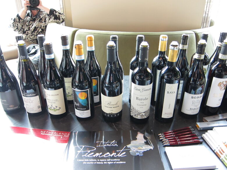 Nijhuis hield een adequate inleiding over Piemonte, een wijngebied met een eeuwenlange geschiedenis en reputatie. Zelfs President Jefferson van de USA was in 1806 een fan van de nebbiolo. Nebbiolo zal deze in die tijd ongetwijfeld anders hebben gesmaakt als nu, want wijnmaaktechnieken zijn in twee eeuwen wel enigszins veranderd. Ook nu heeft nebbiolo nog vele gezichten in de vier subgebieden van Piemonte: Monferrato, Asti, Alto Piemonte en Langhe. De laatste is het meest bekende met Barolo en Barbaresco. Sinds 2024 is Piemonte ook nog eens een UNESCO-werelderfgoed. Dus genieten qua smaak en uitzicht is gegarandeerd.