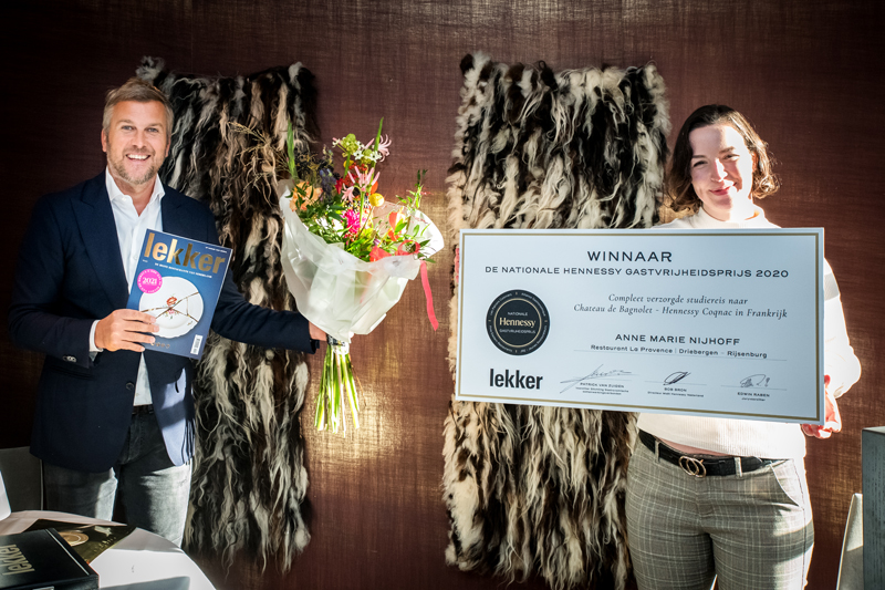 Anne Marie Nijhoff (25) van restaurant La Provence in Driebergen is de winnaar van de 19de editie van de Nationale Hennessy Gastvrijheidsprijs 2020 en mag zich de beste jonge gastvrouw van Nederland noemen. De uitreiking vond dit jaar digitaal plaats, tegelijkertijd met de lancering van Lekker500 2021.