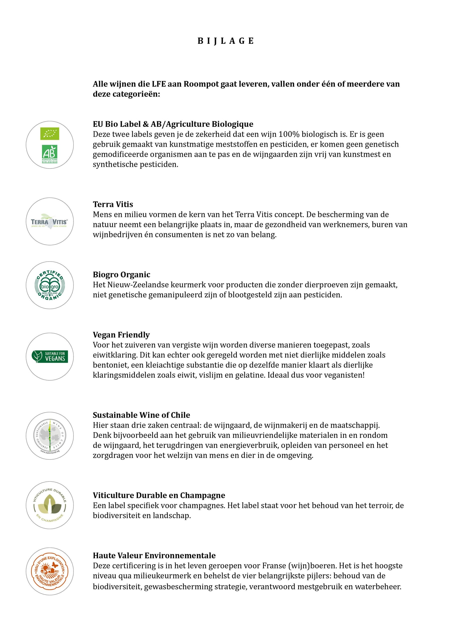 Certificeringen en uitleg voor Roompot wijnassortiment