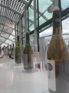 Op het dak is een prachtige glazen koepel gebouwd. En daar was de proeverij van Vinites. Via een donkere entree kwam je in een helverlichte zaal. Beneden en boven stonden 13 producenten zoals Fontanfredda, Gusbourne en Philipponnat, maar er waren ook vele, vele wijnen open te proeven op een van de proeftafels. De attente personeelsleden van Vinites zorgden ervoor dat alles er netjes bij bleef staan, want als iedereen zichzelf inschenkt kan die netheid er weleens bij inschieten. Personeel van Capital C liep rond met hapjes om de inwendige mens te versterken