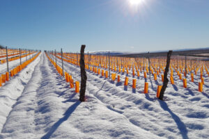 Is het eindelijk mooi weer, komt er een artikel met een foto van wijngaarden in de sneeuw. Inderdaad, want in