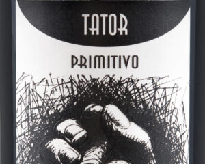 De Tator Primitivo heeft een indrukwekkend design. De wijn heeft een zwartwit getekend label van twee tegen elkaar liggende handen.